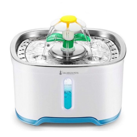 FUENTE DE AGUA FLOR PLATÓN EN ACERO INOXIDABLE CON FILTRO, ideal para perros y gatos, con ventana de nivel de agua con luz led azul: puedes controlar claramente el nivel de agua, cuando es el momento de rellenar el agua, hace que sea fácil para las mascotas beber agua en la oscuridad 🐾