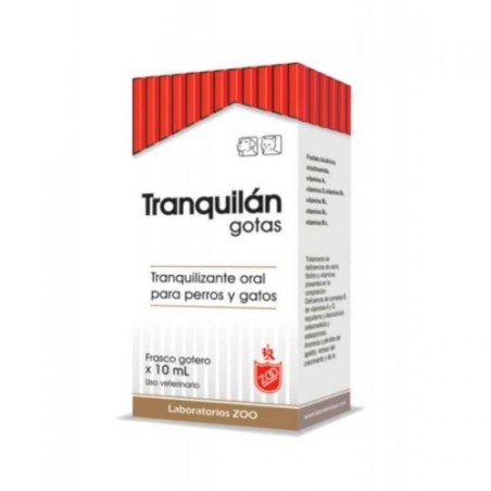 En perros y gatos como tranquilizante. Control de animales inquietos, nerviosos o agresivos durante exámenes clínicos, tratamientos, transporte, radiografías y procedimientos que requieran de la indiferencia parcial o total del animal, como es el caso de profilaxis dentarias en caninos. Útil para disminuir el prurito en irritaciones de la piel y como antiemético para evitar el mareo en el transporte. Tranquilán Gotas tiene las siguientes características: mejora y prolonga los efectos de los barbitúricos, por lo que reduce los requerimientos y riesgos en anestesia general. En animales en ayuno o con poco contenido gástrico, el efecto tranquilizante se presenta antes de 30 minutos. En animales agresivos, puede administrarse con el alimento preferido. Normalmente, su acción dura 2 horas, aunque los efectos pueden observarse, en algunos casos, hasta por 4 horas. No tiene propiedades analgésicas, en cualquier tipo de cirugía es indispensable utilizar un anestésico.