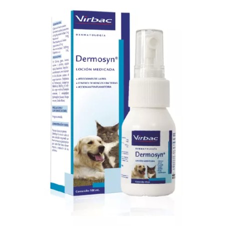 Dermosyn Loción Spray es un tratamiento dermatológico diseñado específicamente para combatir infecciones bacterianas y fúngicas en mascotas. Su fórmula ofrece una acción antibacteriana, antifúngica y antiinflamatoria, brindando un alivio efectivo para diversas afecciones cutáneas. Es ideal para tratar problemas como prurito, eczema y otras condiciones de la piel, proporcionando una solución integral y flexible para el cuidado dermatológico veterinario.