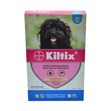 KILTIX® es una alternativa diferente efectiva y confiable que a diferencia de los tratamientos tópicos mensuales contra pulgas y garrapatas, este las elimina en 24 horas durante 4 meses consecutivos evitando así posibles reinfestaciones gracias al poder sinérgico de sus elementos activos que se liberan en el pelaje del perro durante todo el periodo de eficacia.