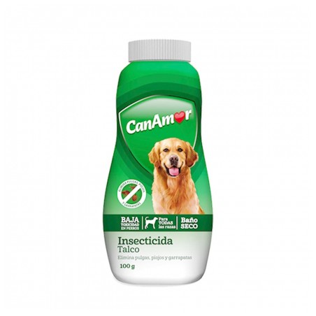 El talco Canamor es un talco insecticida de uso externo ideal para usar con baño en seco. Su fórmula será eficaz para el tratamiento y control de parásitos externos como lo son las pulgas, garrapatas y piojos. Tiene un nivel bajo de toxicidad para mayor seguridad en su aplicación y dejará y agradable y durable aroma que ayudará a postergar el baño por más tiempo.