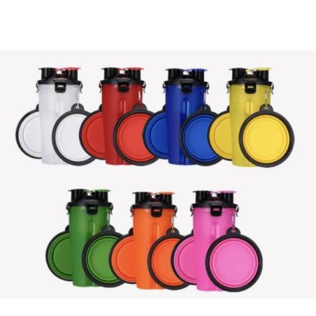 Contenedor Comida y Agua + 2 Platos Plegables Calabaza Color surtido