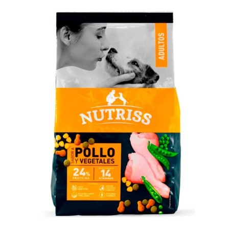 Alimento seco para perros adultos con sabor a pollo y vegetales.