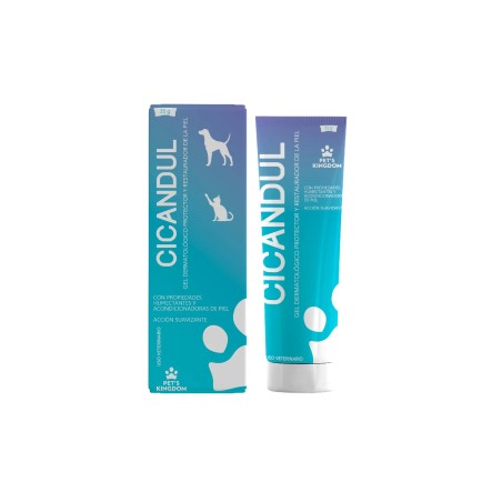 CICANDUL es un suavizante de piel, en pulpejos y codos de perros y gatos. En bovinos y equinos, sirve para suavizar la piel y sus anexos en pezones o ubres. Se reseña a continuación algunas funciones importantes de sus componentes: Clorhexidina: En concentraciones usuales (0.5%) actúa provocando daño en la membrana citoplasmática bacteriana. Aloe Vera: Son múltiples las sustancias que están presentes en el Aloe Vera, como el glicomanano gliberelina que interactúa con los receptores del factor de crecimiento del broblasto, estimulando su actividad y crecimiento, lo que promueve la síntesis de colágeno luego del uso tópico.
